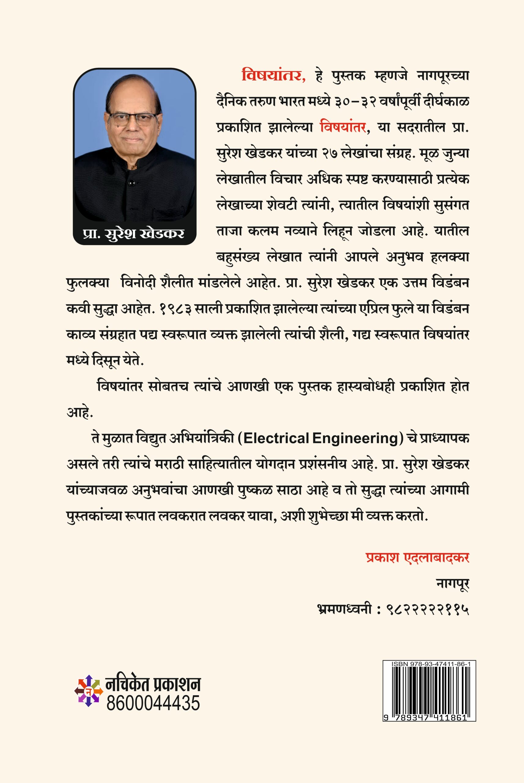 आहे. विषयांतर सोबतच त्यांचे आणखी एक पुस्तक हास्यबोधही प्रकाशित होत