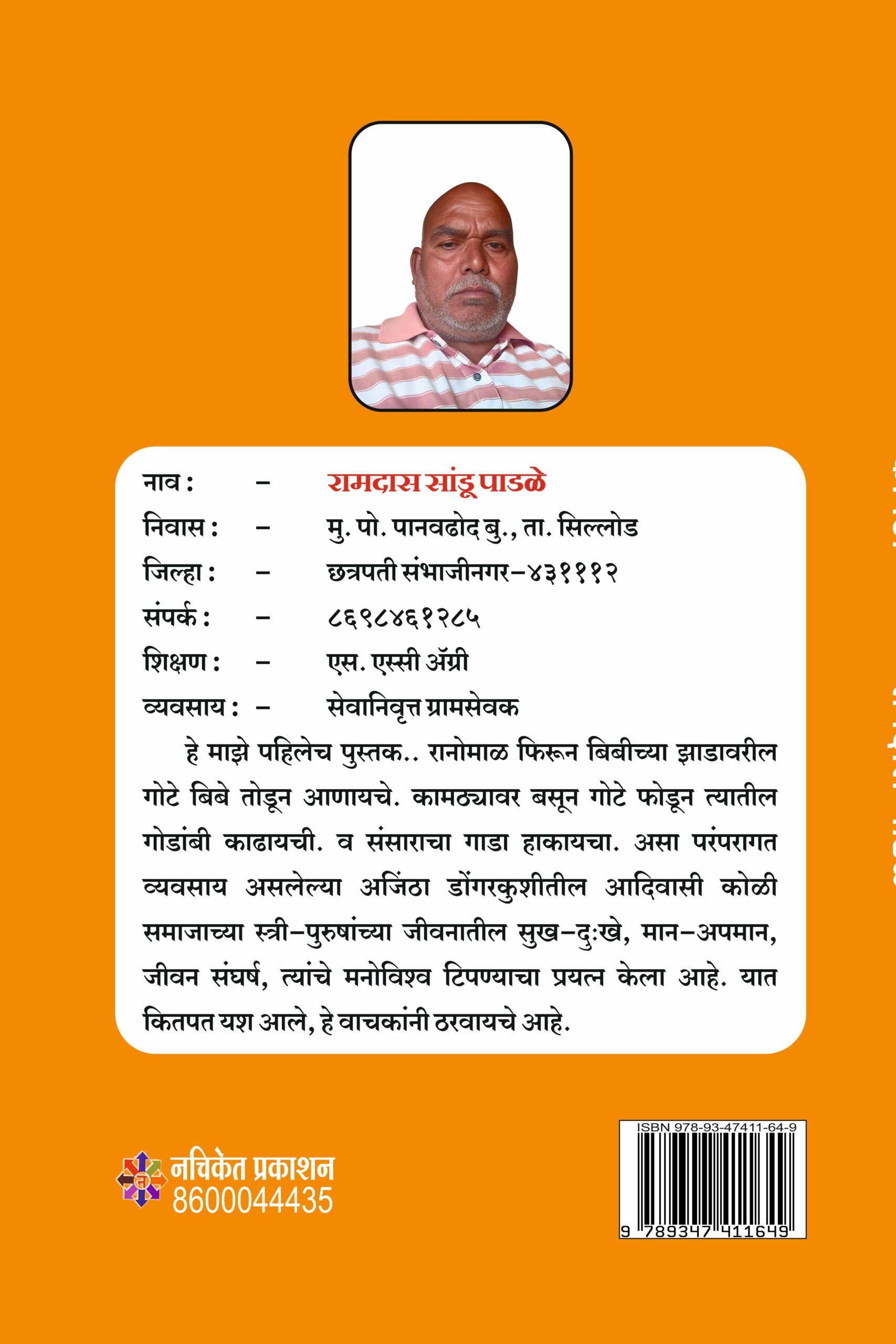 हे माझे पहिलेच पुस्तक.. रानोमाळ फिरून बिबीच्या झाडावरील गोटे बिबे तोडून आणायचे. कामठ्यावर बसून गोटे फोडून त्यातील गोडांबी काढायची. व संसाराचा गाडा हाकायचा. असा परंपरागत व्यवसाय असलेल्या अजिंठा डोंगरकुशीतील आदिवासी कोळी समाजाच्या स्त्री-पुरुषांच्या जीवनातील सुख-दुःखे, मान-अपमान, जीवन संघर्ष, त्यांचे मनोविश्व टिपण्याचा प्रयत्न केला आहे. यात कितपत यश आले, हे वाचकांनी ठरवायचे आहे.